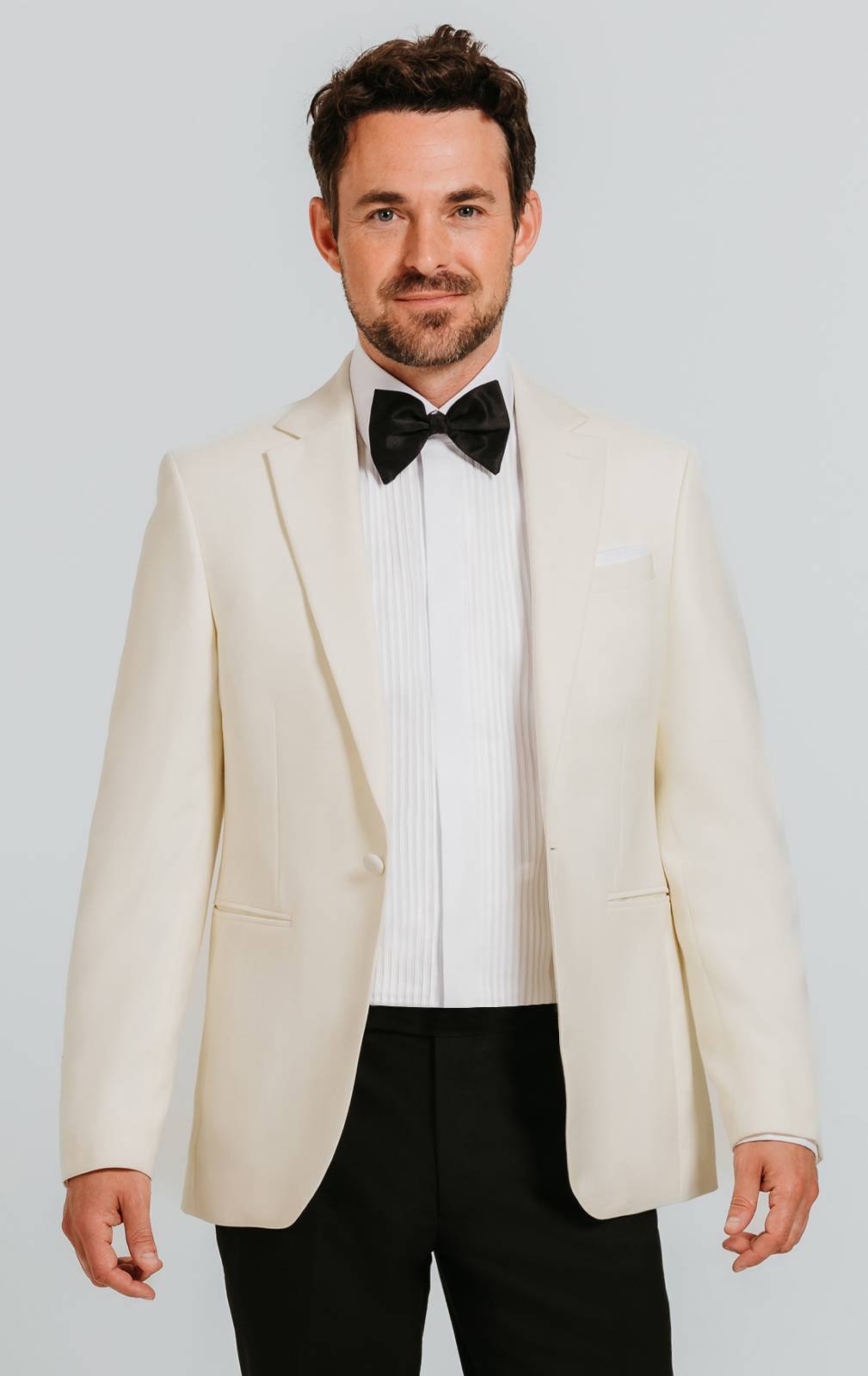 This white notch lapel tuxedo jacket by Dobell is a formalwear classic. Created with a Teflon coating for easy cleaning, this jacket is finished with a single button fastening, single breast pocket,... Price: £149.99 (Price correct on 2026-02-11) Starts on 2026-02-11 00:00:00 Expires on 2026-02-25 23:59:59 ICID 7470131